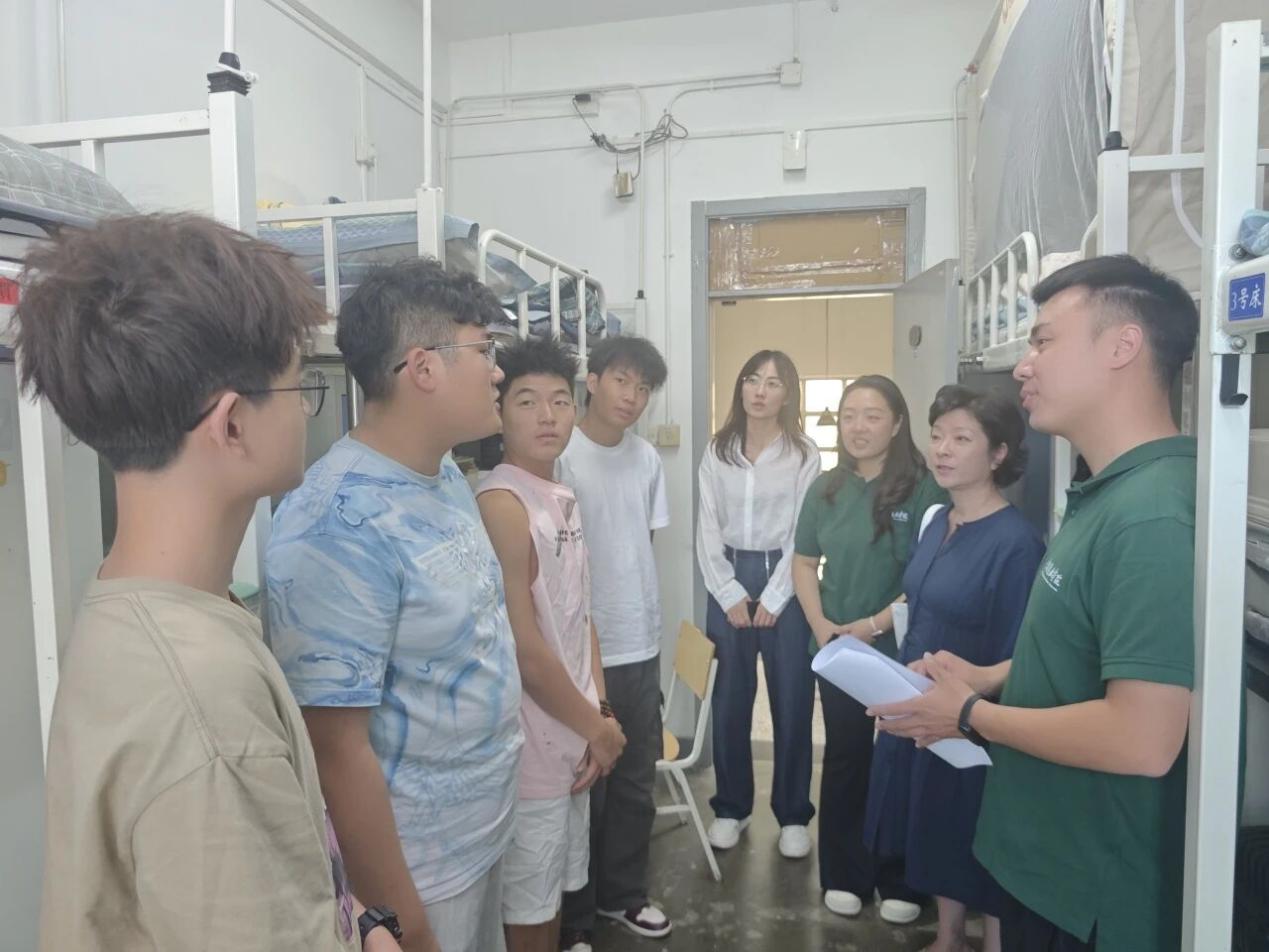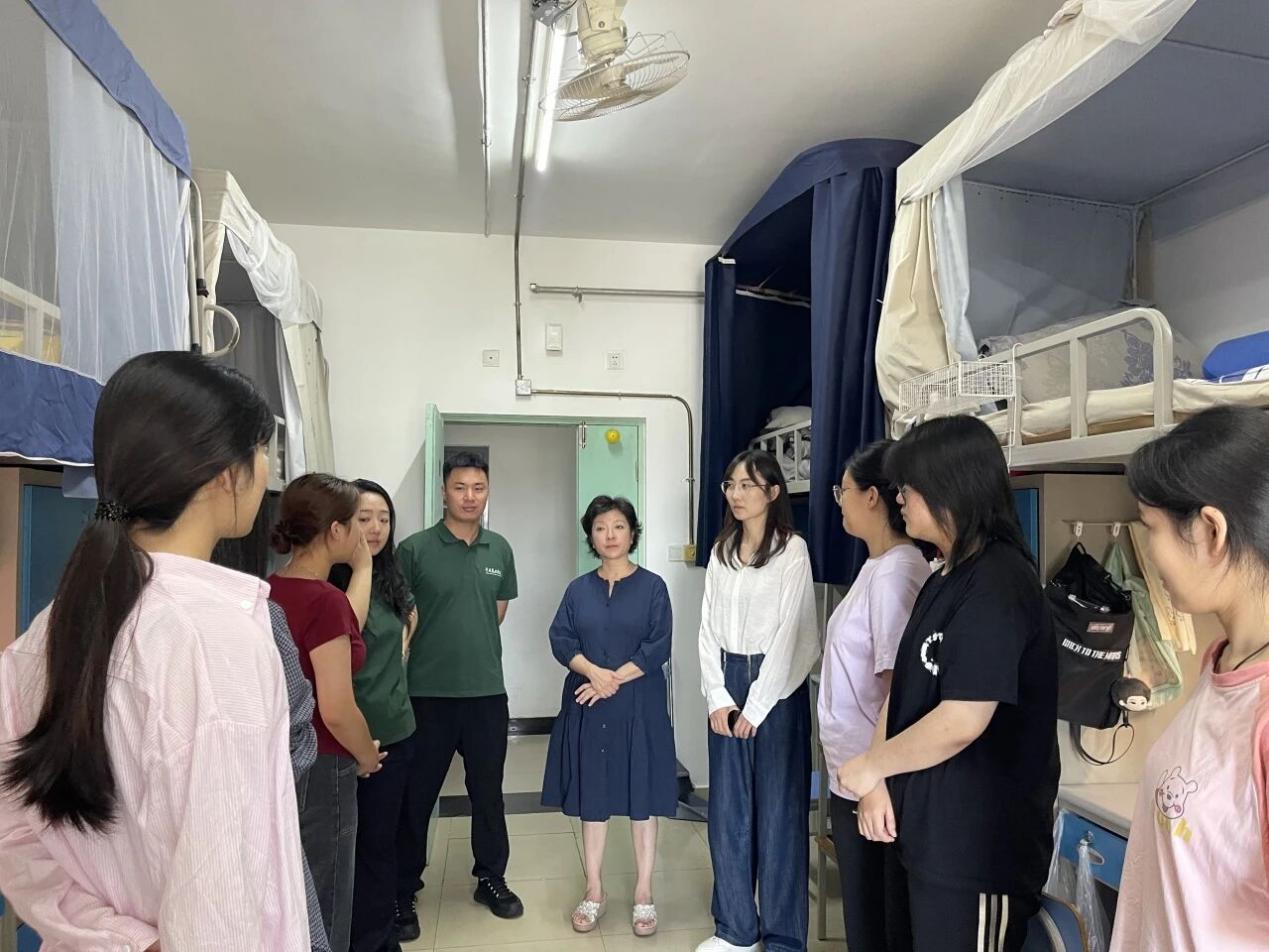 音乐系党总支书记牛长虹带队开展新生宿舍走访工作,向新同学开展暖心慰问,了解各寝室入住情况,针对宿舍安全问题提出了要求,为新学期校园安全筑牢基础。
