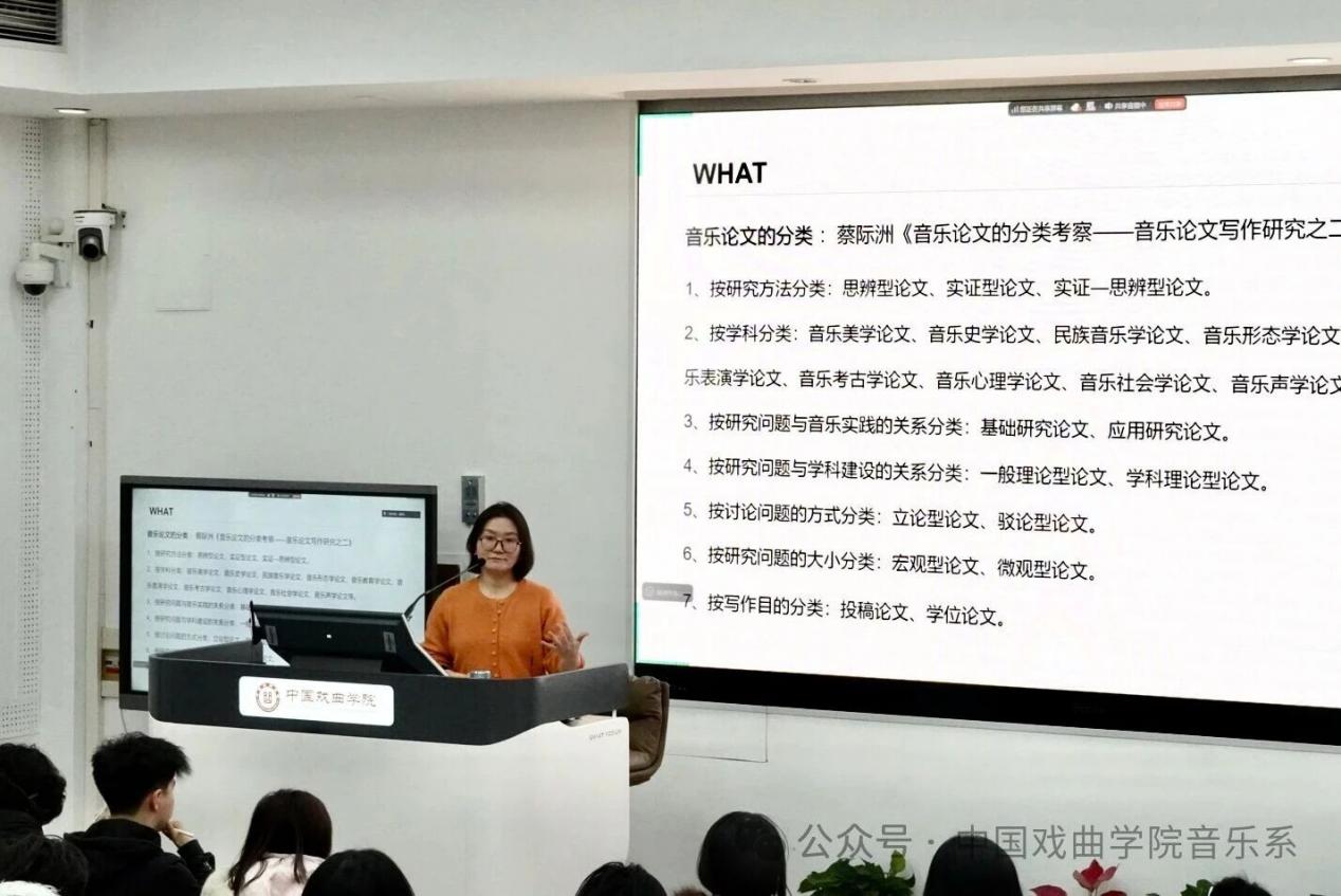 整场讲座内容详实、贴合实际,既有理论指导,也有实用方法,在场学生认真聆听、反响热烈。本次讲座为音乐系学生提供了宝贵的学术写作指引,有助于同学们逐步建立起规范、系统的研究意识与写作能力,以期为今后顺利完成学业论文乃至从事音乐学术研究奠定坚实基础。
