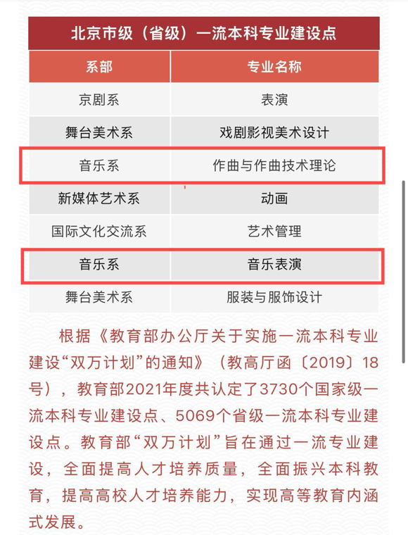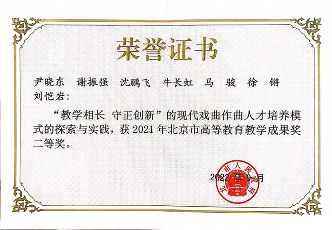 音乐系落实立德树人根本任务,创立国内一流的戏曲音乐教育体系。作曲与作曲技术理论入选国家级一流本科专业建设点,音乐表演入选省级一流本科专业建设点;民族器乐教学团队入选北京高校优秀育人团队;“教学相长 守正创新——现代戏曲作曲人才培养模式探索与实践”项目获北京市高等学校教育教学成果奖;戏曲作曲入选北京市课程思政示范课程,3名授课教师入选北京市课程思政教学名师和教学团队。教师编著的《板胡戏曲风格乐曲十二首》《扬琴专业演奏教程(上、下)》荣获北京高校优质本科教材,“新伴奏模式乐队实践课”荣获北京高校优质本科课程。教师获得全国百名戏曲专业专兼职教师、全国青少年民族器乐教育教学展演优秀指导教师、北京高校优秀专业课主讲教师、北京教育系统“服务育人先锋”等多项荣誉称号。